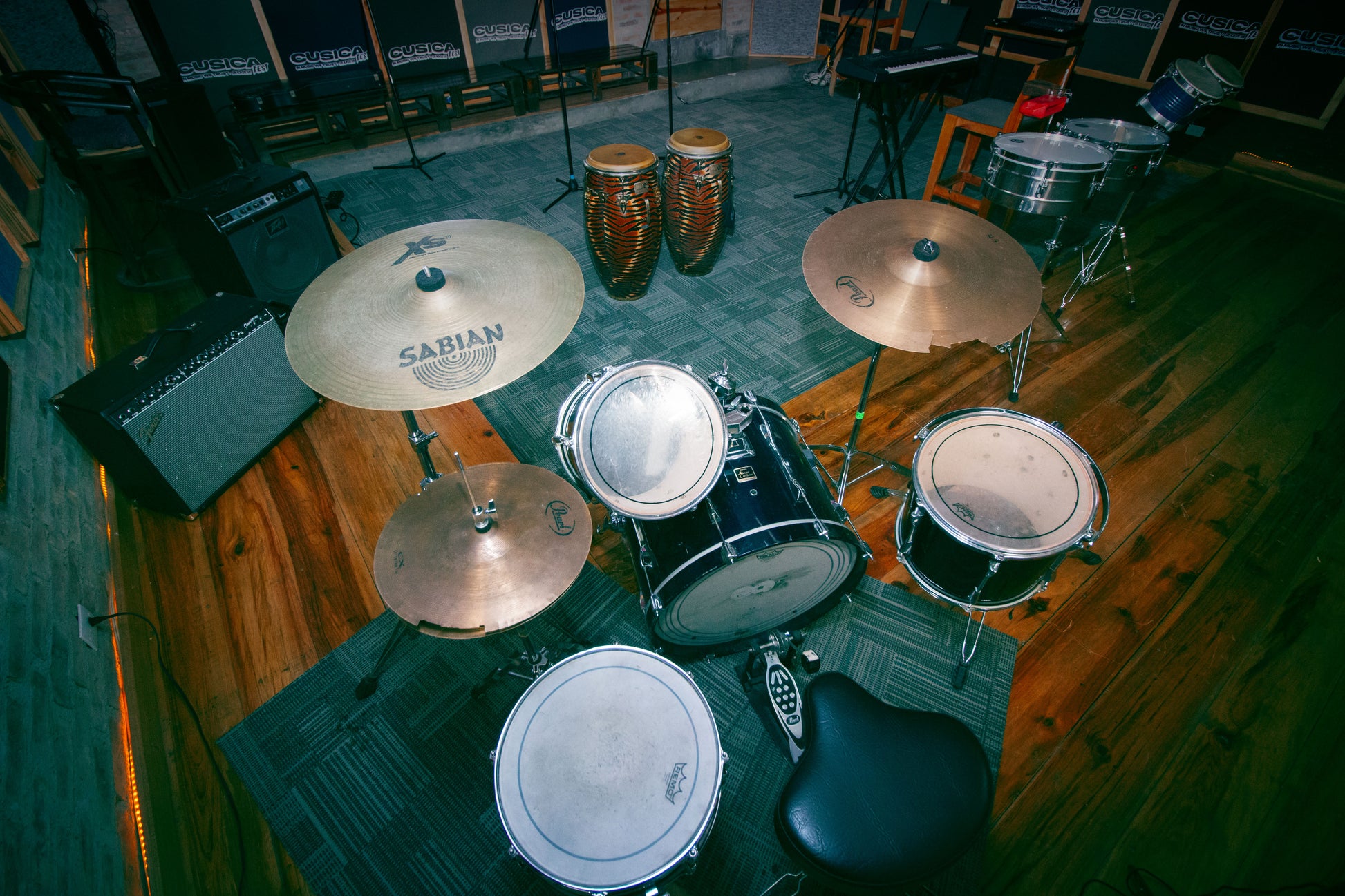 - Dimensiones: Espacio generoso de 9.50 x 8 mts, perfecto para bandas completas y proyectos ambiciosos.